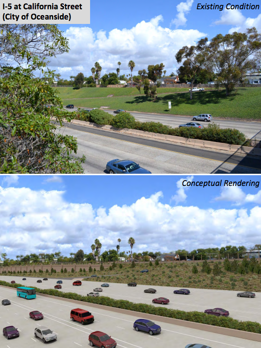 Highlights of Oceanside area changes include a couple of pocket parks, some sound barriers, The visual simulation looks as if the freeway is really encroaching on the Buena Vista Lagoon and there are major improvements to bike and pedestrian paths along all 27 miles.